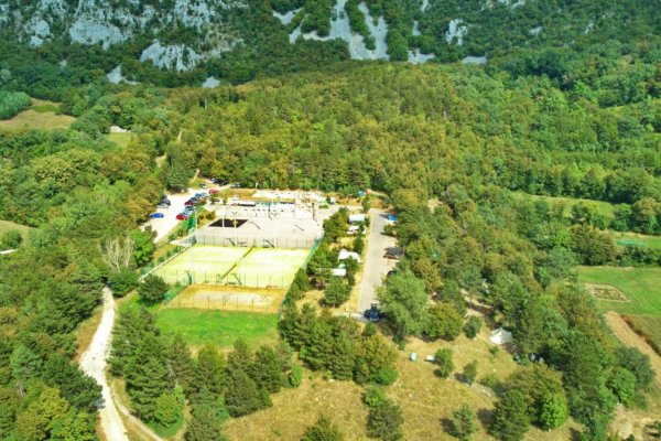El campamento Tura está situado en el corazón del valle superior del Vipava, justo debajo de la meseta de Nanos. El campamento se encuentra en un entorno natural tranquilo y virgen. La ubicación ofrece una perfecta sensación de lejanía y tranquilidad y una experiencia completa de la naturaleza. El camping se encuentra debajo de la pared natural de escalada Gradiška tura, en una zona virgen de Nature 2000. Le sorprenderá la hermosa vista del valle superior del Vipava. Se encontrará en un entorno tranquilo, lejos del bullicio de la ciudad, donde disfrutará del descanso y de diversas actividades deportivas.